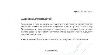پیام تسلیت نخست وزیر و وزیر امور خارجه بلغارستان به سرپرست وزارت امور خارجه ایران در خصوص شهادت رئیس جمهور ایران و همراهان